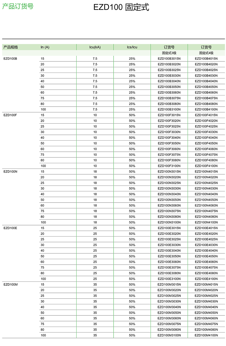 簡介內(nèi)容:施耐德塑殼斷路器EZD系列配電用固定式斷路器EZD100